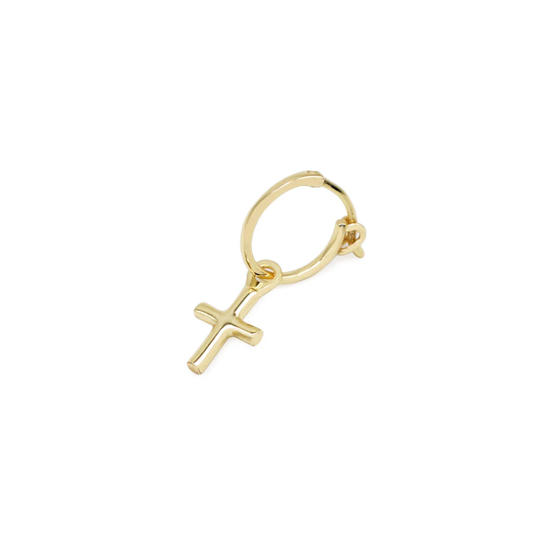 The Gold Cross Earring is one of our earliest designs, making it a Serge essential. Both the hoop & pendant are made from 14KT Gold Plated Sterling Silver and has a small mark to signify the quality.