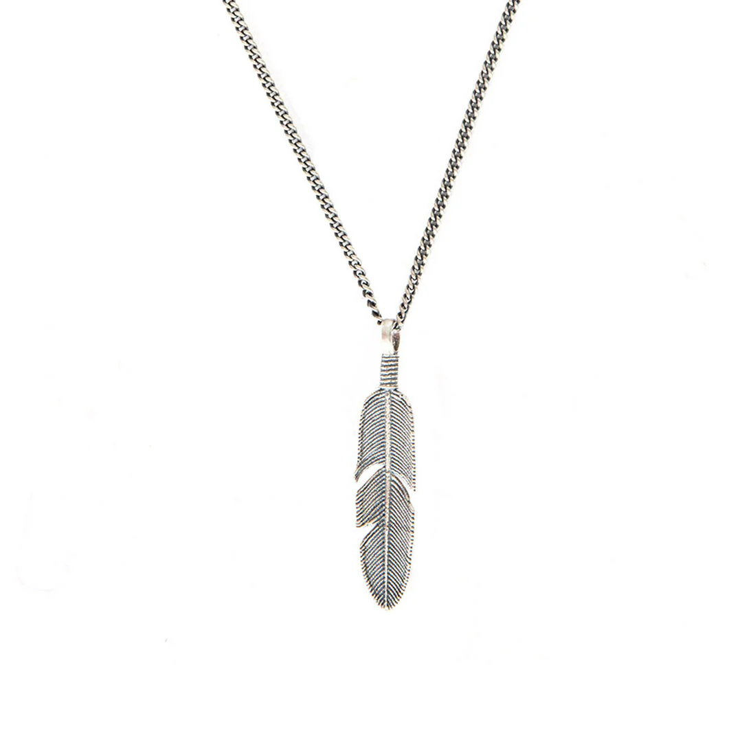 The delicate feather pendant is an iconic symbol of freedom, inspiration and travel, making it a great talisman for your travels or for every day wear. The pendant is 4cm long and hangs from a slim curb chain. The chain is 46-52cm and is finished with a Sterling Silver lobster clasp.