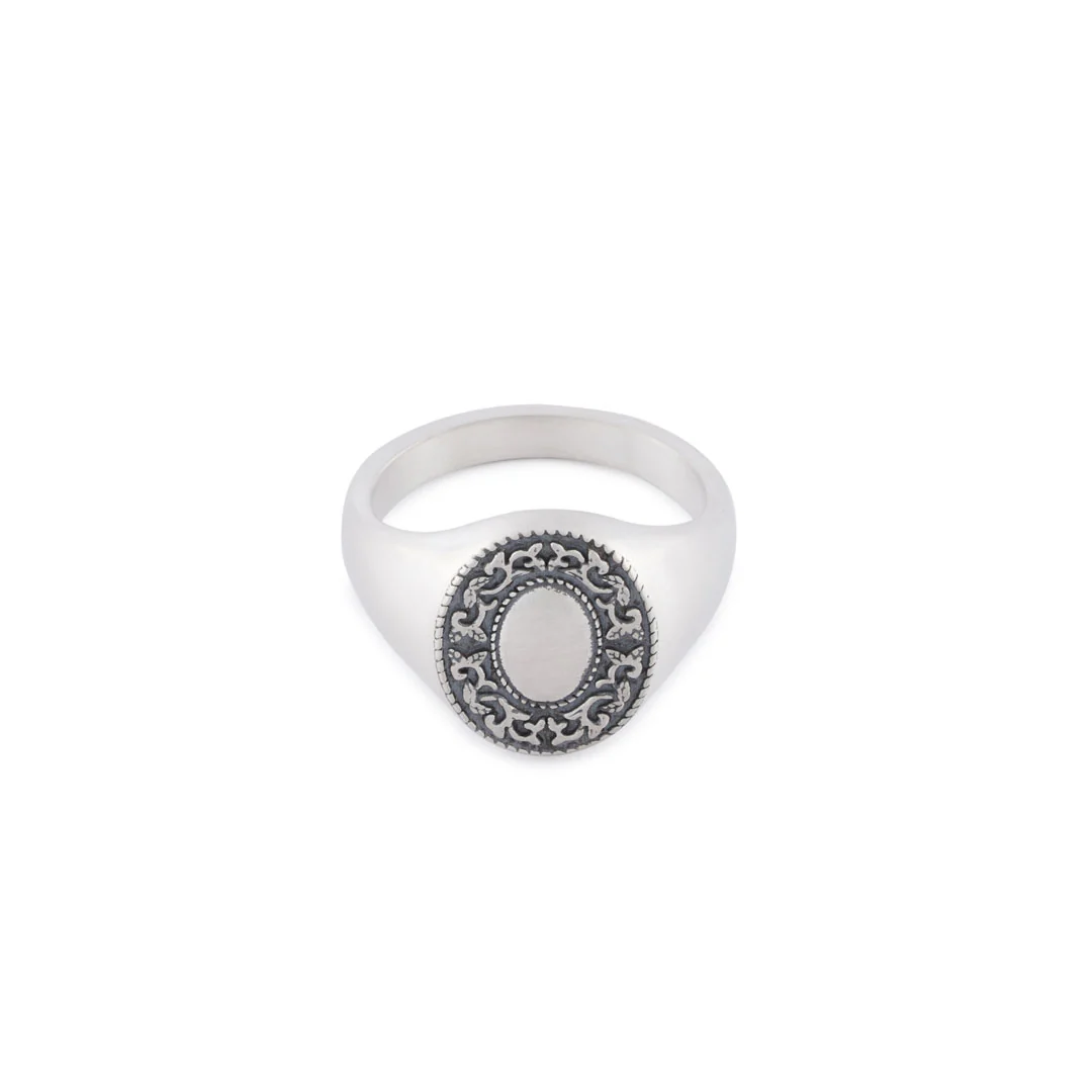 The Silver Saloon Ring is a classic signet ring design with an oval face with an Americana inspired design. The ring is made from 925 Sterling Silver, and is hallmarked by Great British Assay Offices verifying its quality.